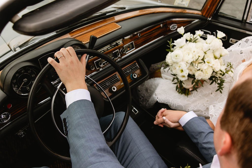 This refined Boston Public Library wedding featured sculptural white sweet pea, full white peonies, and cascading greenery accented with polished gold magnolia for a quietly dramatic, editorial look. Floral compositions were designed to feel architectural yet fluid, echoing the grandeur of Bates Hall while allowing softness and movement to lead the experience. A deeply personal moment was carried throughout the day as the bride honored her grandmothers with a locket of their photographs tied to her bouquet, grounding the celebration in family and legacy. Balancing sentiment with elevated design, this wedding reflects our approach to fashion-forward florals for Boston couples seeking a meaningful, museum-worthy celebration.