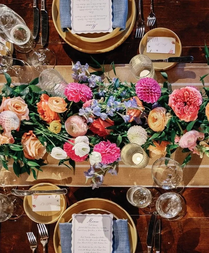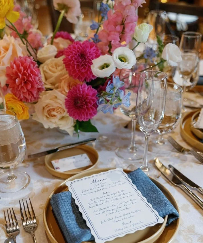 Florals highlighted locally grown peonies and dahlias, layered with rich fall textures that added depth and movement throughout the day. The result was a lush, garden-forward aesthetic that felt abundant, joyful, and deeply rooted in the season.