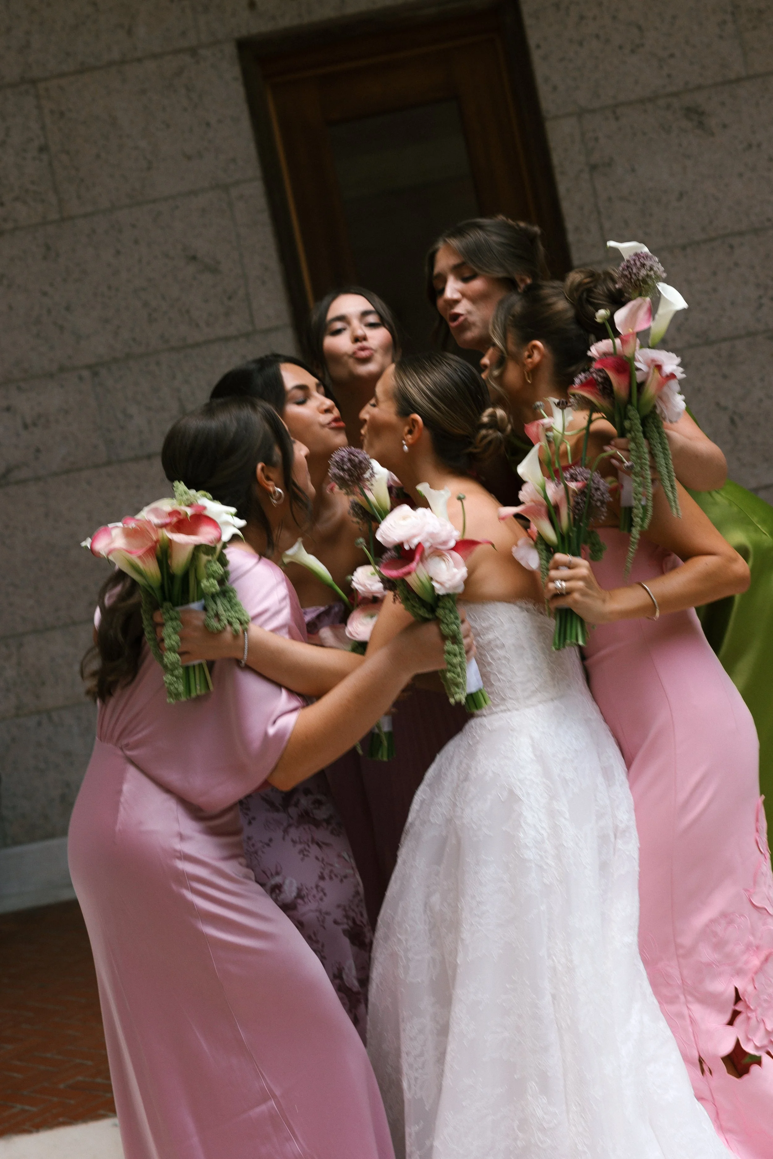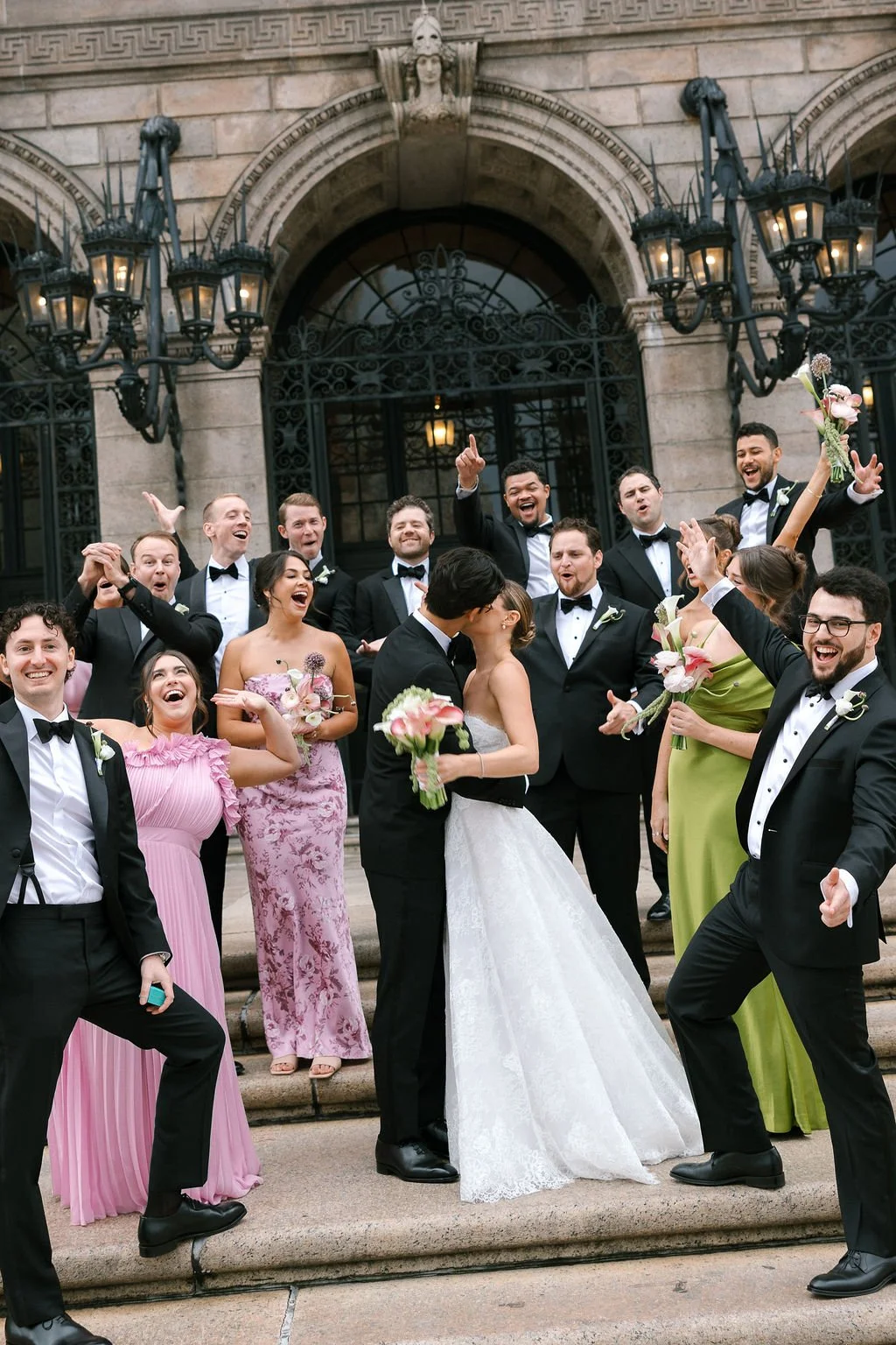 Sarah and Adrian’s wedding at the Boston Public Library was a refined, sculptural celebration defined by modern floral artistry in one of Boston’s most iconic architectural settings. The design focused on architectural florals—featuring sculptural calla lilies, cascading hanging amaranths, and bold allium—creating a modern, editorial aesthetic that complemented the grandeur of the library’s historic interiors.