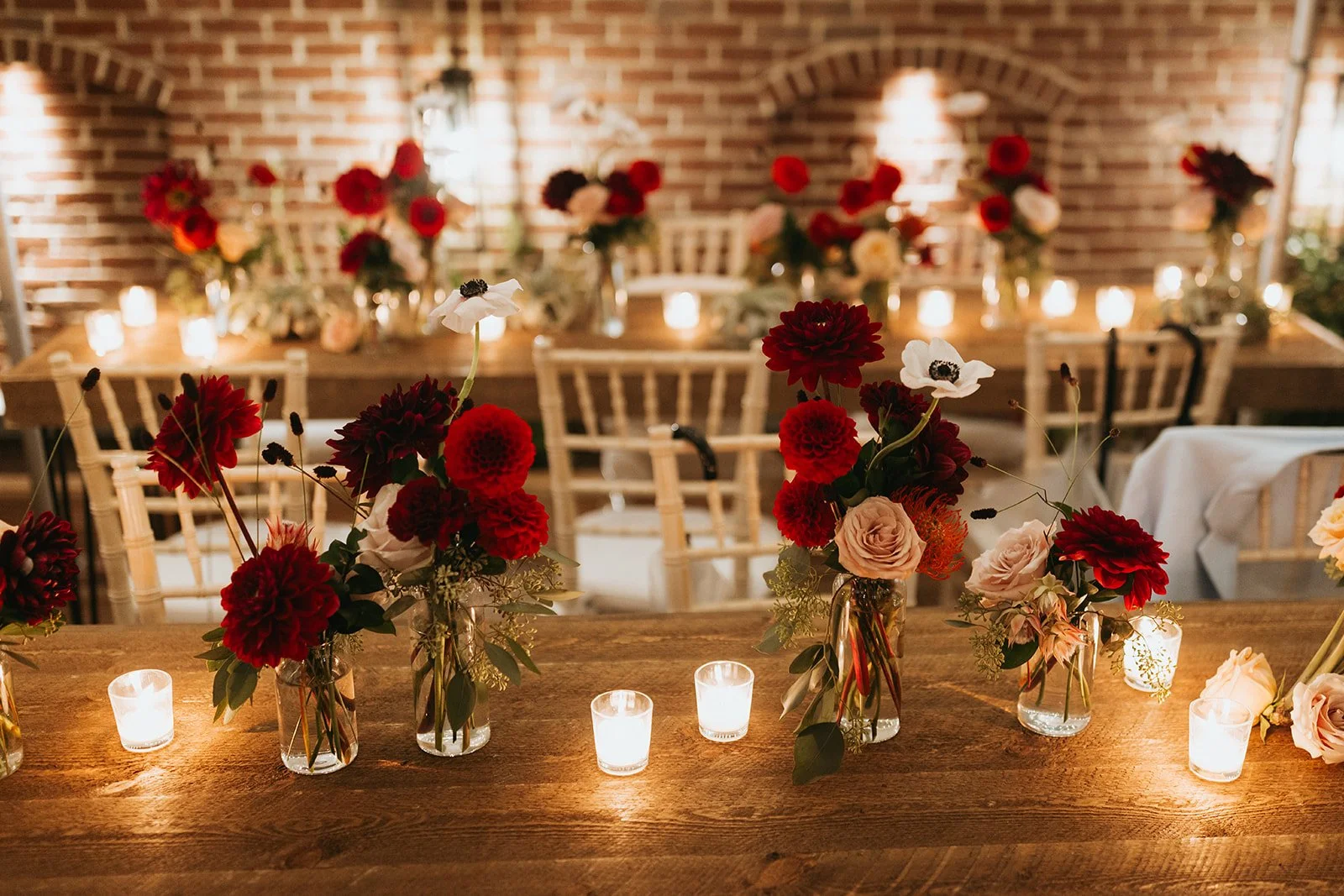 With a smaller guest count, we were able to focus on thoughtful placement, detailed tablescapes, and florals that invited guests to gather in and connect. Seasonal dahlias sourced from local growers grounded the celebration in a true sense of place and time.